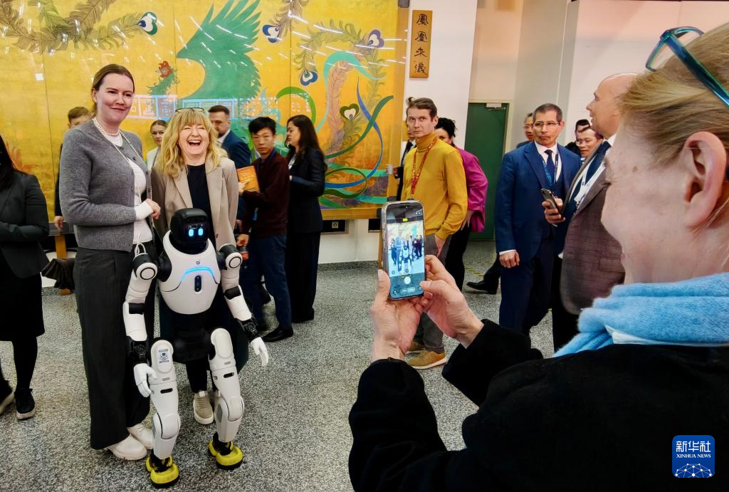 4月13日,在奧地利維也納國(guó)際中心,人們?cè)谝浴疤统錆M——在維也納聯(lián)合國(guó)遇見(jiàn)故宮”為主題的2026年維也納聯(lián)合國(guó)中文日系列活動(dòng)上與機(jī)器人合影。 新華社發(fā)(王宙攝)