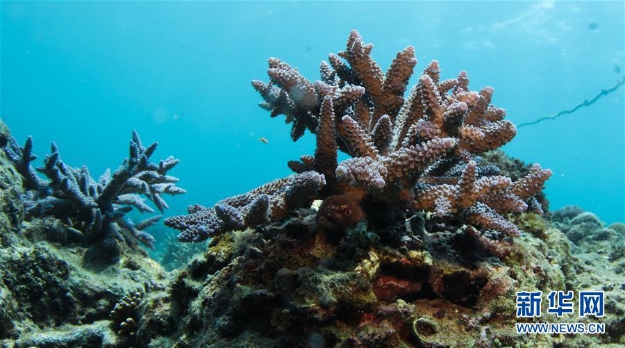 這是海南三亞蜈支洲島海域海洋牧場內(nèi)生長的珊瑚(4月29日攝)。新華社記者楊冠宇攝