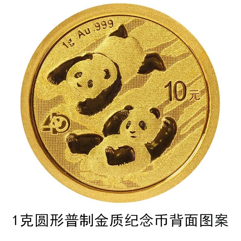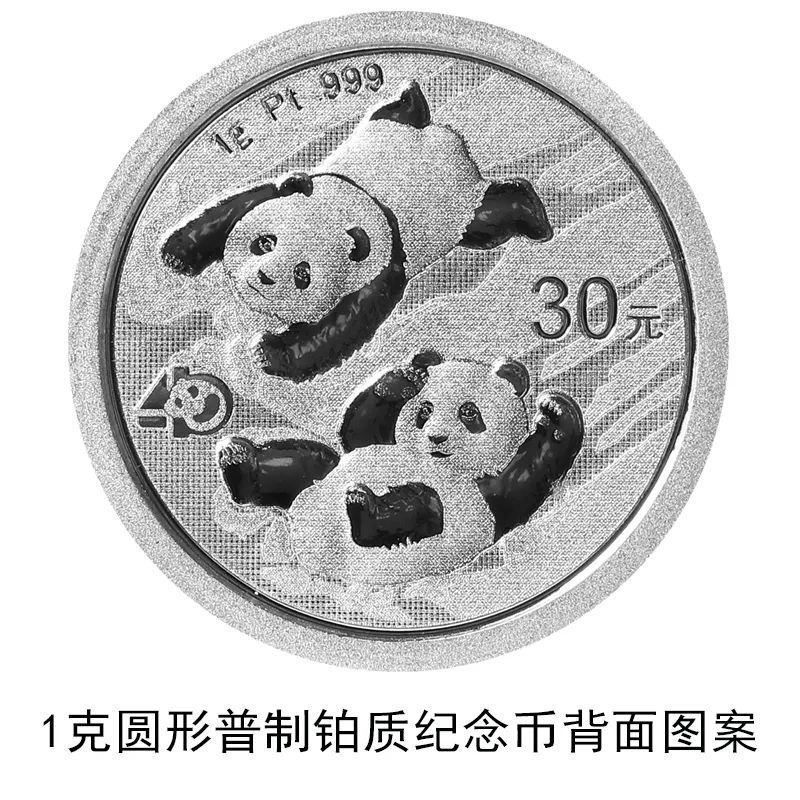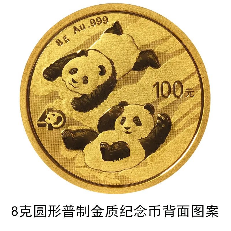 該套貴金屬紀(jì)念幣正面圖案均為北京天壇祈年殿,并刊國(guó)名、年號(hào);背面圖案均為大熊貓滑雪嬉戲場(chǎng)景,輔以“熊貓金幣發(fā)行40周年標(biāo)識(shí)”元素,并刊面額、重量及成色。