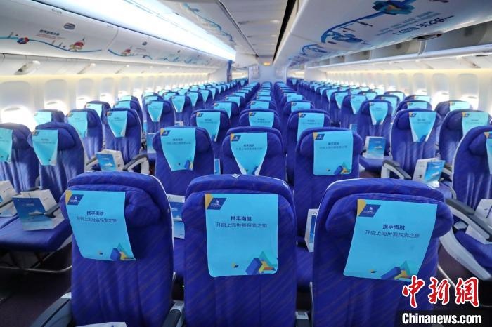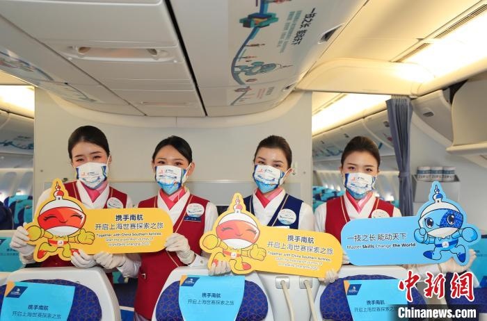 當日,首航旅客一登機,就發(fā)現(xiàn)了南航“上海世賽號”的與眾不同,從飛機機身的彩繪到客艙內(nèi)部滿是世賽元素,客艙行李架、壁板的裝飾氛圍以及全艙座椅頭巾的世賽特別設(shè)計,與南航乘務(wù)員身著的碧水紅棉彩云藍天制服相得益彰,令人耳目一新。首航航班旅客均獲贈專門定制的帶有世賽元素的“首航禮物”,旅客們紛紛在客艙內(nèi)合影留念。