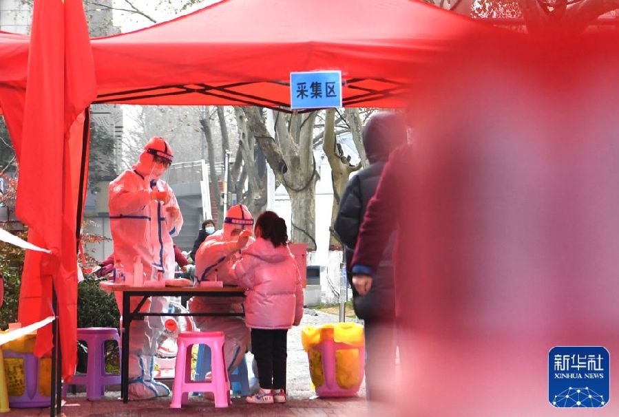 1月10日,在鄭州市二七區(qū)政通路一處核酸檢測點,醫(yī)務(wù)人員為市民進行核酸檢測取樣。新華社發(fā)(丁友明攝)