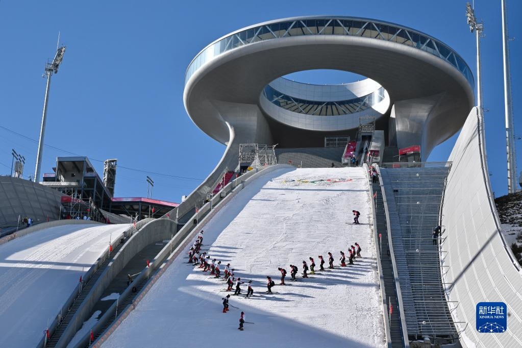 國家跳臺(tái)滑雪中心“雪如意”傲視群峰,賽道沿山體飄搖直下,北京冬奧會(huì)期間,跳臺(tái)滑雪和北歐兩項(xiàng)將在“雪如意”上演。