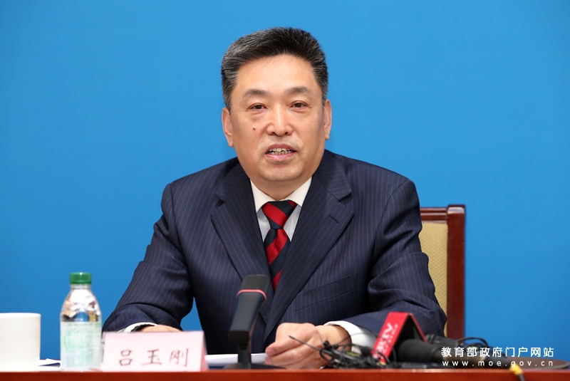 教育部基礎教育司司長呂玉剛介紹國家中小學智慧教育平臺建設與應用有關工作情況。(中國教育報記者 張勁松/攝)
