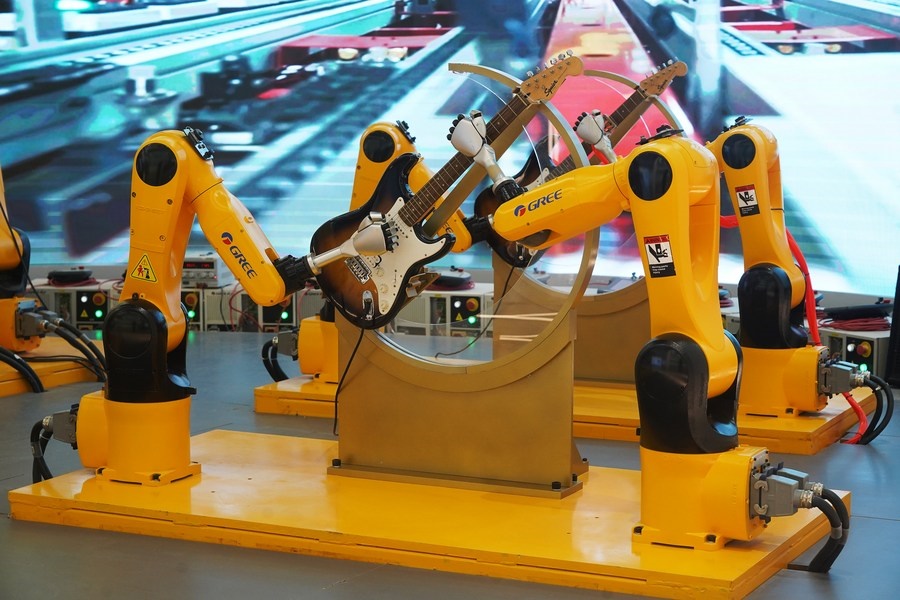 在贛州市格力小鎮(zhèn),機(jī)器人樂隊演奏音樂。新華社記者 萬象攝