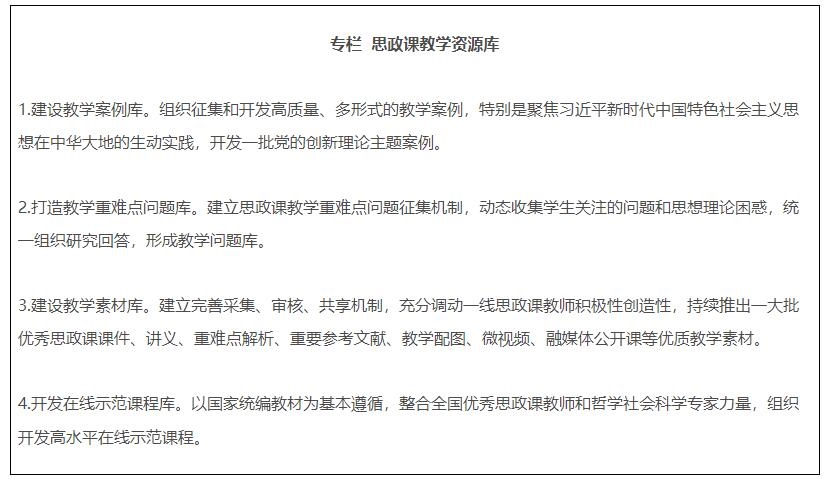 11.建設(shè)全國(guó)高校思政課教研系統(tǒng)。教育部建設(shè)“全國(guó)高校思政課教師網(wǎng)絡(luò)集體備課平臺(tái)”網(wǎng)絡(luò)支持系統(tǒng)、“青梨派”大學(xué)生自主學(xué)習(xí)系統(tǒng)、高校思政課教學(xué)創(chuàng)新中心資源開(kāi)發(fā)系統(tǒng)、高校思政課教學(xué)指導(dǎo)委員會(huì)指導(dǎo)審核評(píng)估系統(tǒng)、高校思政課教師基礎(chǔ)數(shù)據(jù)系統(tǒng)、高校思政課教師研修培訓(xùn)系統(tǒng)等為一體,共建共享、系統(tǒng)集成、全面覆蓋的全國(guó)高校思政課教研系統(tǒng)。