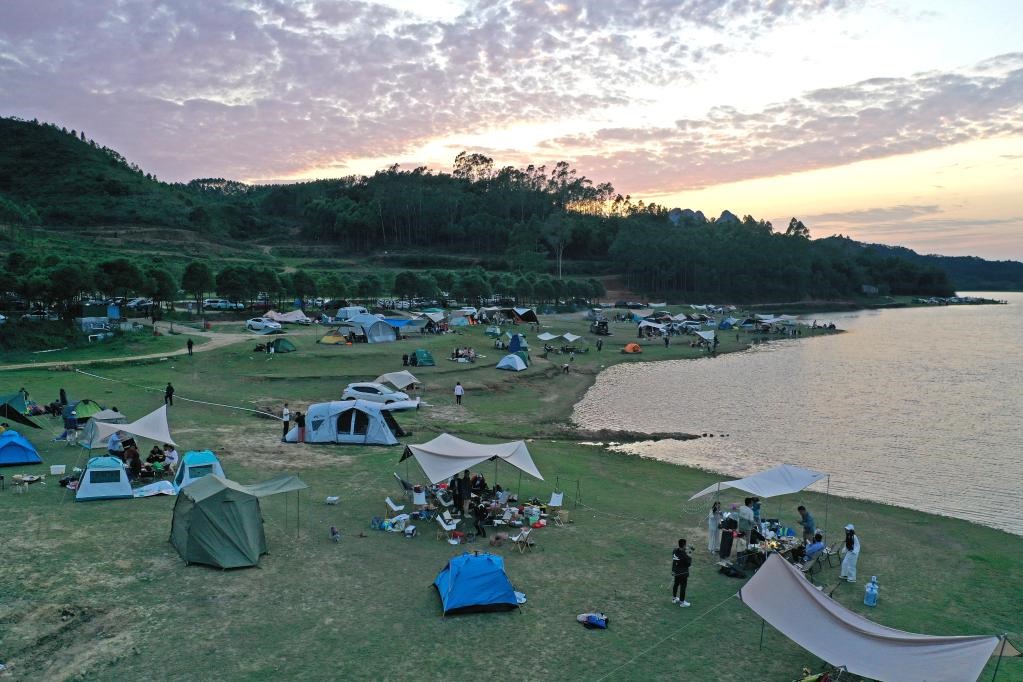 5月2日,游客在南寧市武鳴區(qū)淥學(xué)水庫露營。新華社記者周華攝