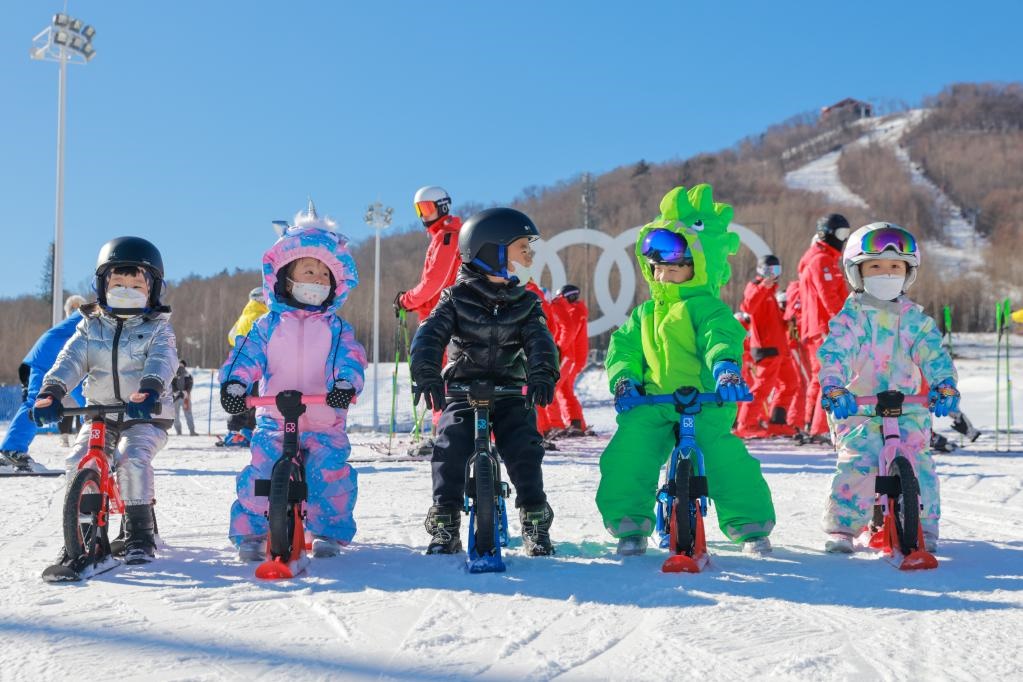 2021年11月17日,在長白山國際度假區(qū)滑雪場,小朋友們體驗雪地平衡車。新華社發(fā)