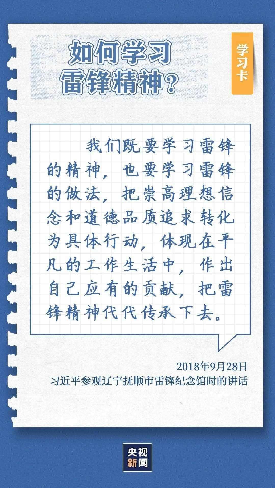 中共中央總書(shū)記、國(guó)家主席、中央軍委主席習(xí)近平近日作出重要指示指出,今年是毛澤東等老一輩革命家為雷鋒同志題詞60周年。60年來(lái),學(xué)雷鋒活動(dòng)在全國(guó)持續(xù)深入開(kāi)展,雷鋒的名字家喻戶曉,雷鋒的事跡深入人心,雷鋒精神滋養(yǎng)著一代代中華兒女的心靈。實(shí)踐證明,無(wú)論時(shí)代如何變遷,雷鋒精神永不過(guò)時(shí)。在新時(shí)代新征程上,如何弘揚(yáng)雷鋒精神?點(diǎn)擊學(xué)習(xí)卡↓