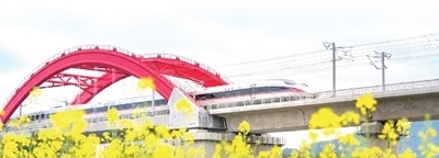 “復(fù)興號(hào)”高鐵列車在贛深高鐵龍南特大橋疾馳而過。朱海鵬攝