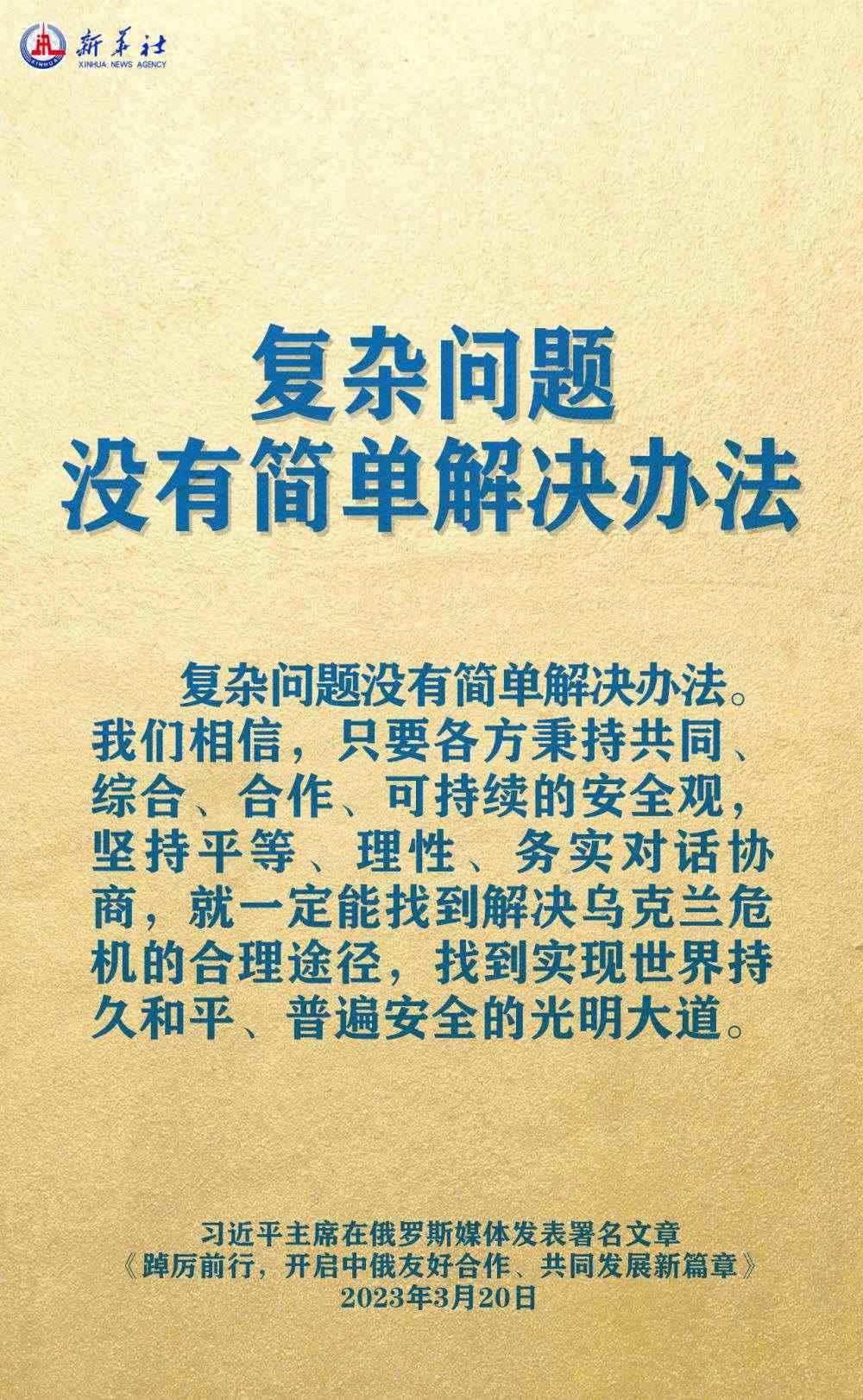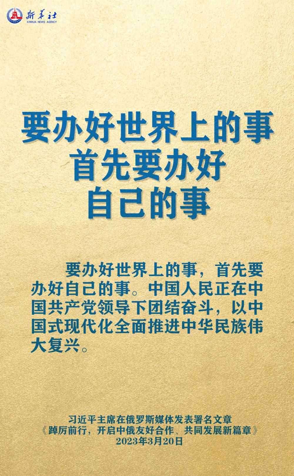 3月20日,在赴莫斯科對俄羅斯聯(lián)邦進(jìn)行國事訪問之際,國家主席習(xí)近平在《俄羅斯報》和俄新社網(wǎng)站發(fā)表題為《踔厲前行,開啟中俄友好合作、共同發(fā)展新篇章》的署名文章。