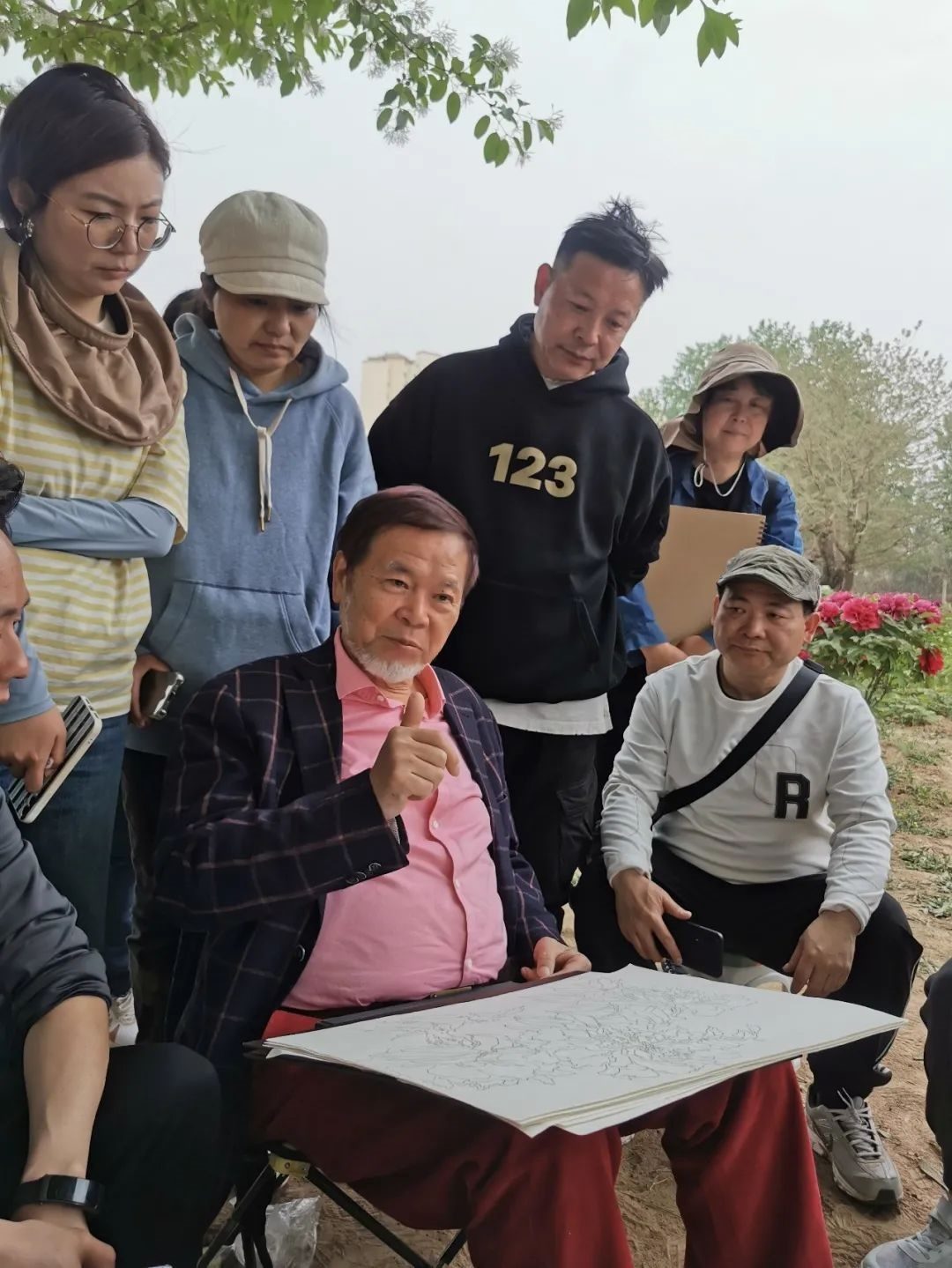自1975年29歲的何水法先生以赤子之心,首次只身赴菏澤,48年來,為畫牡丹,寫其牡丹之真情、寫其牡丹之風(fēng)骨,寫其國花繁榮富強(qiáng)之真諦。用何水法先生世紀(jì)之初所言:“寫生是畫家與生活的對話”。藝術(shù)家也要不斷地站在時代的前列,站在歷史的高位,不斷思索,不斷地刷新繪畫語言。要緊隨時代發(fā)展的需要,不斷突破新題材、突破新意境。因此他今年又親率眾學(xué)生第十五次來菏澤深入考察,發(fā)揮示范引領(lǐng)作用,體驗(yàn)生活、開闊思維,為謳歌人民、謳歌新時代,進(jìn)行新的藝術(shù)創(chuàng)造。