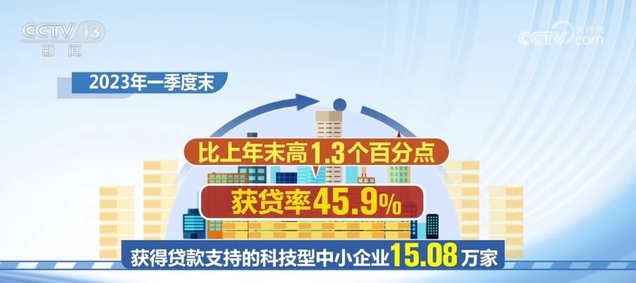 2023年一季度末,獲得貸款支持的科技型中小企業(yè)15.08萬家,獲貸率45.9%,比上年末高1.3個(gè)百分點(diǎn)。科技型中小企業(yè)貸款余額1.76萬億元,同比增長25.2%,比上年末高0.9個(gè)百分點(diǎn)。