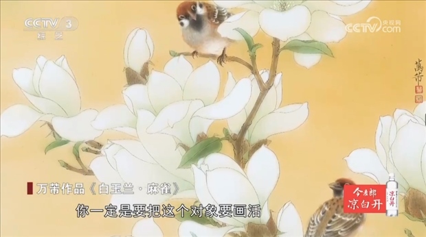 工筆花鳥畫家 上海市文史研究館館員 萬(wàn)芾:我體驗(yàn)了一個(gè)生命的過(guò)程,我也看著鳥的成長(zhǎng),也看著花從一顆種子到發(fā)芽,到花蕾到盛開(kāi)、凋零,生命的過(guò)程每次看我都很有感觸,我說(shuō)生生不息,每張畫里都是這樣的給你的體會(huì),甚至有時(shí)候我覺(jué)得我就像一一朵花,一只鳥一樣,我會(huì)自由地飛翔。