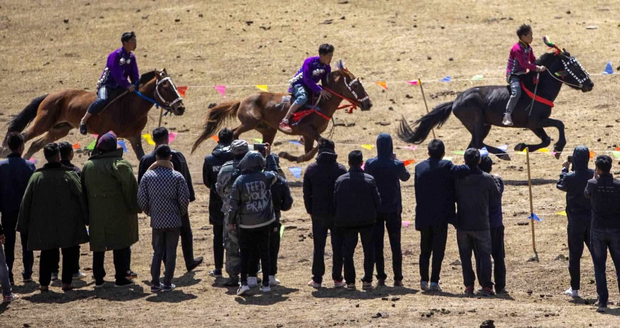 2023年4月25日,四川涼山,普格縣黎安鄉(xiāng)??诹鹤?,傳統(tǒng)的彝族賽馬比賽拉來帷幕。視覺中國