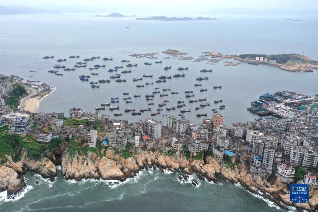 4月30日,準(zhǔn)備休漁的漁船停泊在福建省福州市連江縣苔菉鎮(zhèn)北茭村漁港(無人機(jī)照片)。   新華社發(fā)(王旺旺攝)