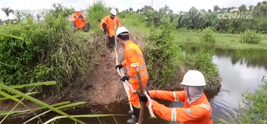 在勘探過程中,工作人員會(huì)用不同顏色的飄帶進(jìn)行標(biāo)記,這種紅色的飄帶是代表保護(hù)樹種,禁止砍伐,藍(lán)色飄帶則指示著項(xiàng)目的路線。這些飄帶全都是用可降解材料制成的,在勘探任務(wù)結(jié)束后,還會(huì)有專門的小組對工區(qū)進(jìn)行垃圾回收和雨林恢復(fù)工作。目前,項(xiàng)目已經(jīng)完成了70%的工作量,預(yù)計(jì)7月中旬可以順利竣工。一年多來,項(xiàng)目多次接受當(dāng)?shù)丨h(huán)保等部門的各項(xiàng)檢查,每一次審計(jì)和檢測都收到了相關(guān)方非常高的評(píng)價(jià)。