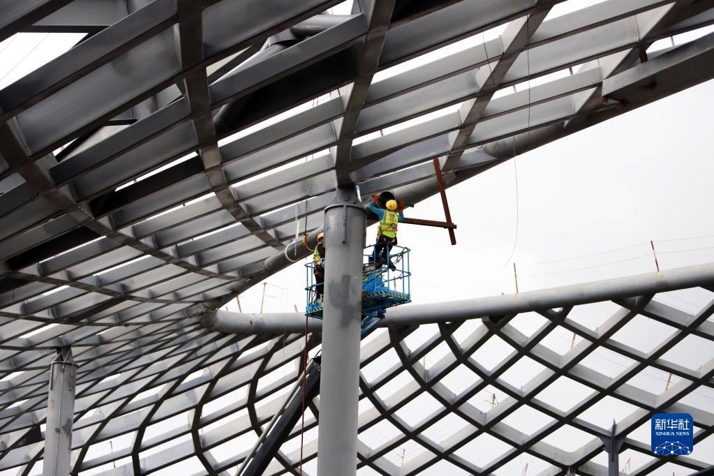 5月1日,中鐵建工集團(tuán)工人在貴州貴安新區(qū)貴安站擴(kuò)建項目工地施工。