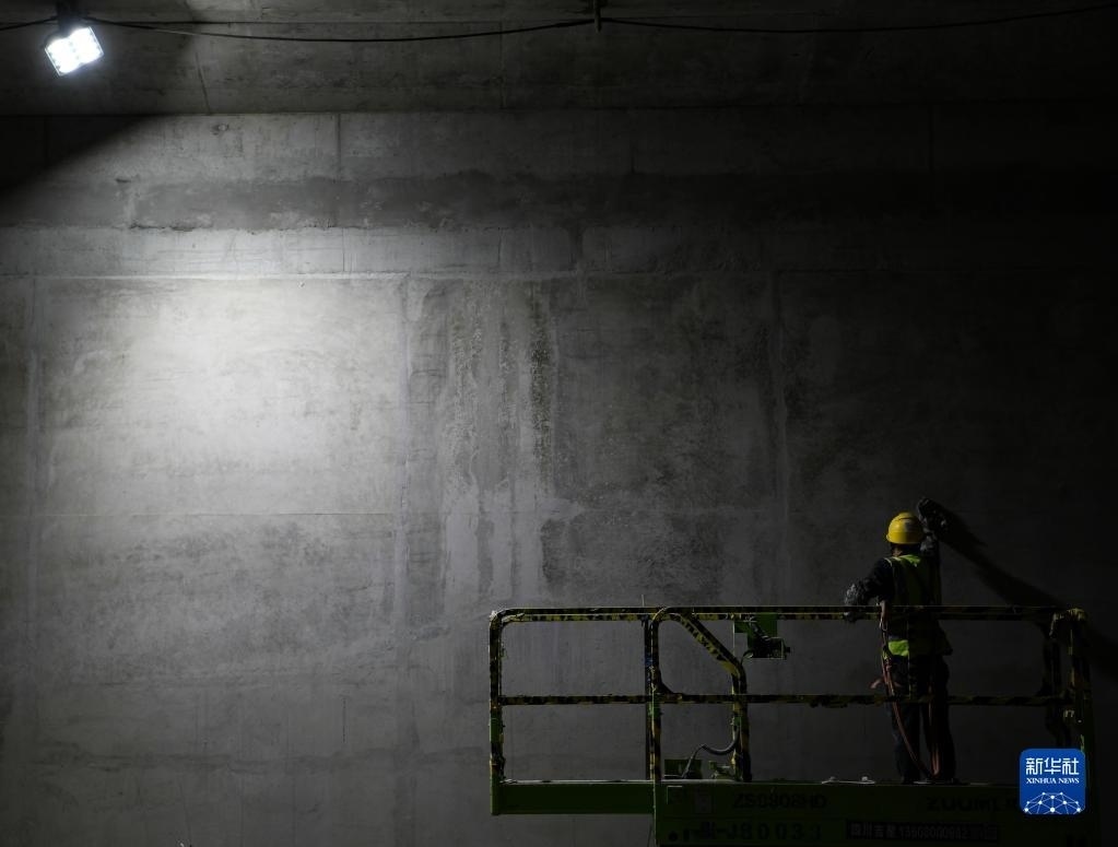 5月1日,在成都地鐵27號線一期工程項目花照壁北站施工現(xiàn)場,中建三局的工人在施工。