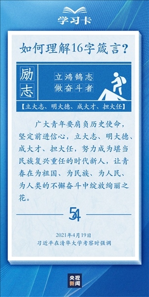 青春,是人生最美的時光。青年,是國家的未來和民族的希望。每每與青年對話,習近平總書記無不囑托青年“立大志”“堅定理想信念”“擔當復(fù)興大任”,言之諄諄,意之殷殷。對于新時代青年如何走好人生路,習近平總書記2018年提出十六字箴言,字短意長。今天,一起學(xué)習↓