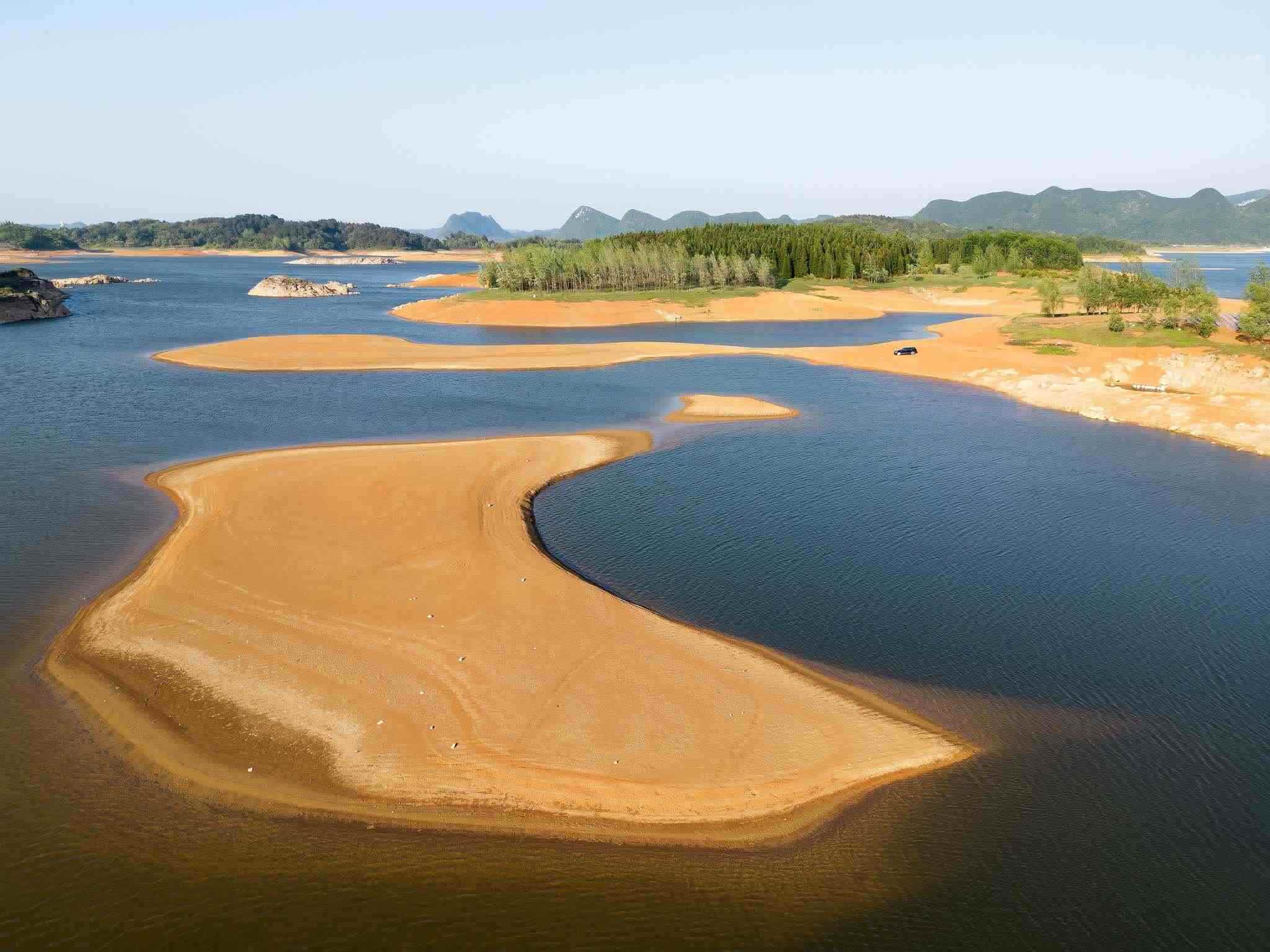 貴陽(yáng):紅楓湖水位線(xiàn)下降 湖底大面積裸露