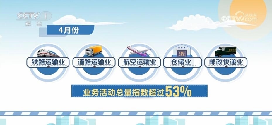 中國物流與采購聯(lián)合會5月4日公布,4月份中國物流業(yè)景氣指數(shù)為53.8%,繼續(xù)保持在擴張區(qū)間。部分行業(yè)的業(yè)務活動總量指數(shù),保持在50%以上擴張區(qū)間。其中,鐵路運輸業(yè)、道路運輸業(yè)、航空運輸業(yè)、倉儲業(yè)和郵政快遞業(yè)超過53%。