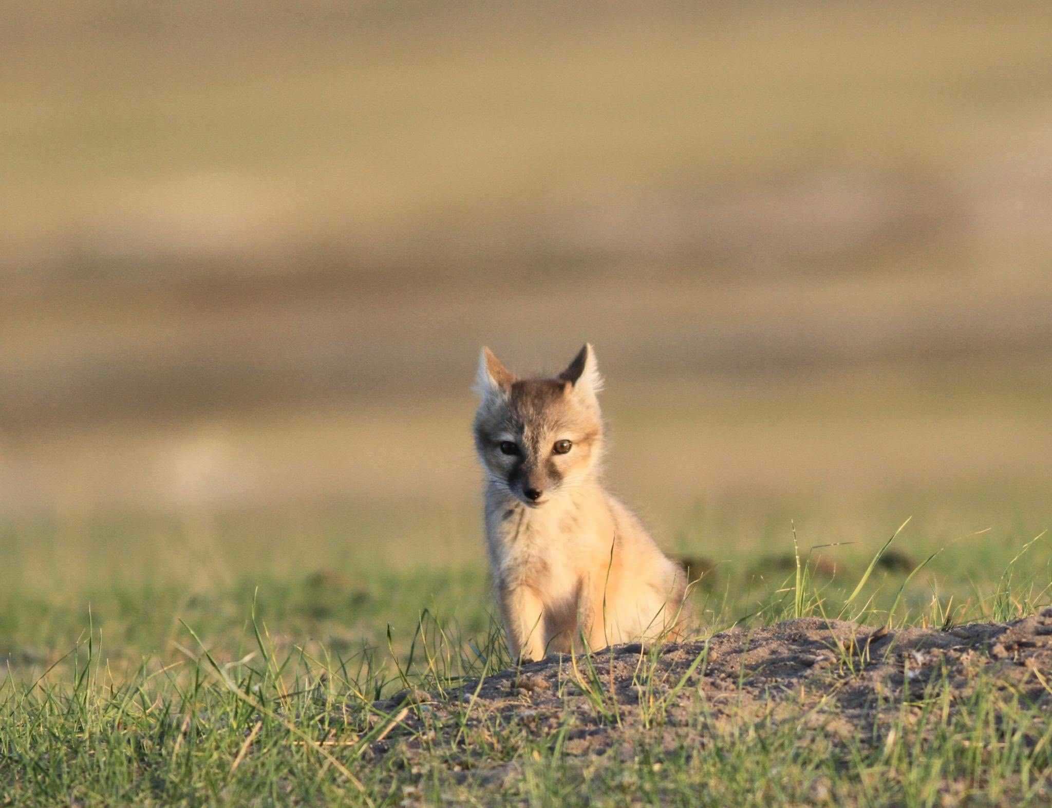 2023年5月7日,河北張家口,沽源縣閃電河國家濕地公園,幾只小沙狐從洞里慢慢出來,探視外面的世界。視覺中國