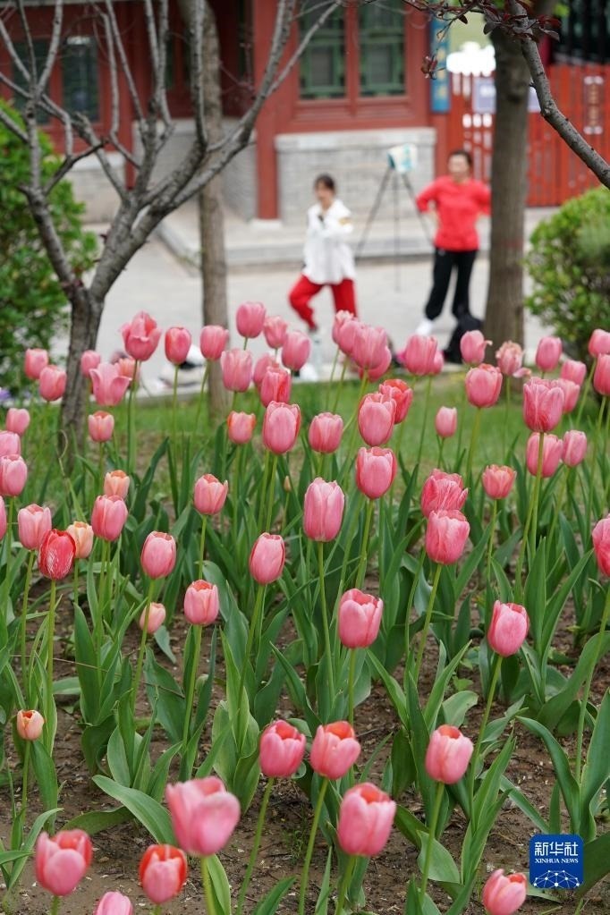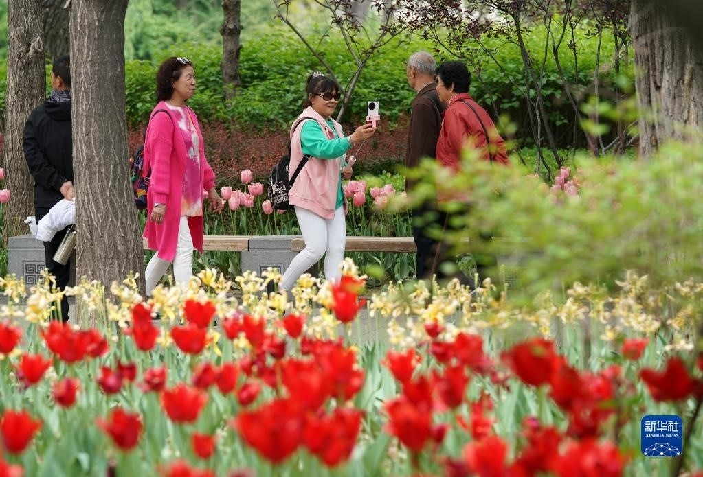 近日,山西省太原市迎澤公園內(nèi)各色郁金香競(jìng)相綻放,吸引游人前來觀花賞景。新華社記者 詹彥 攝