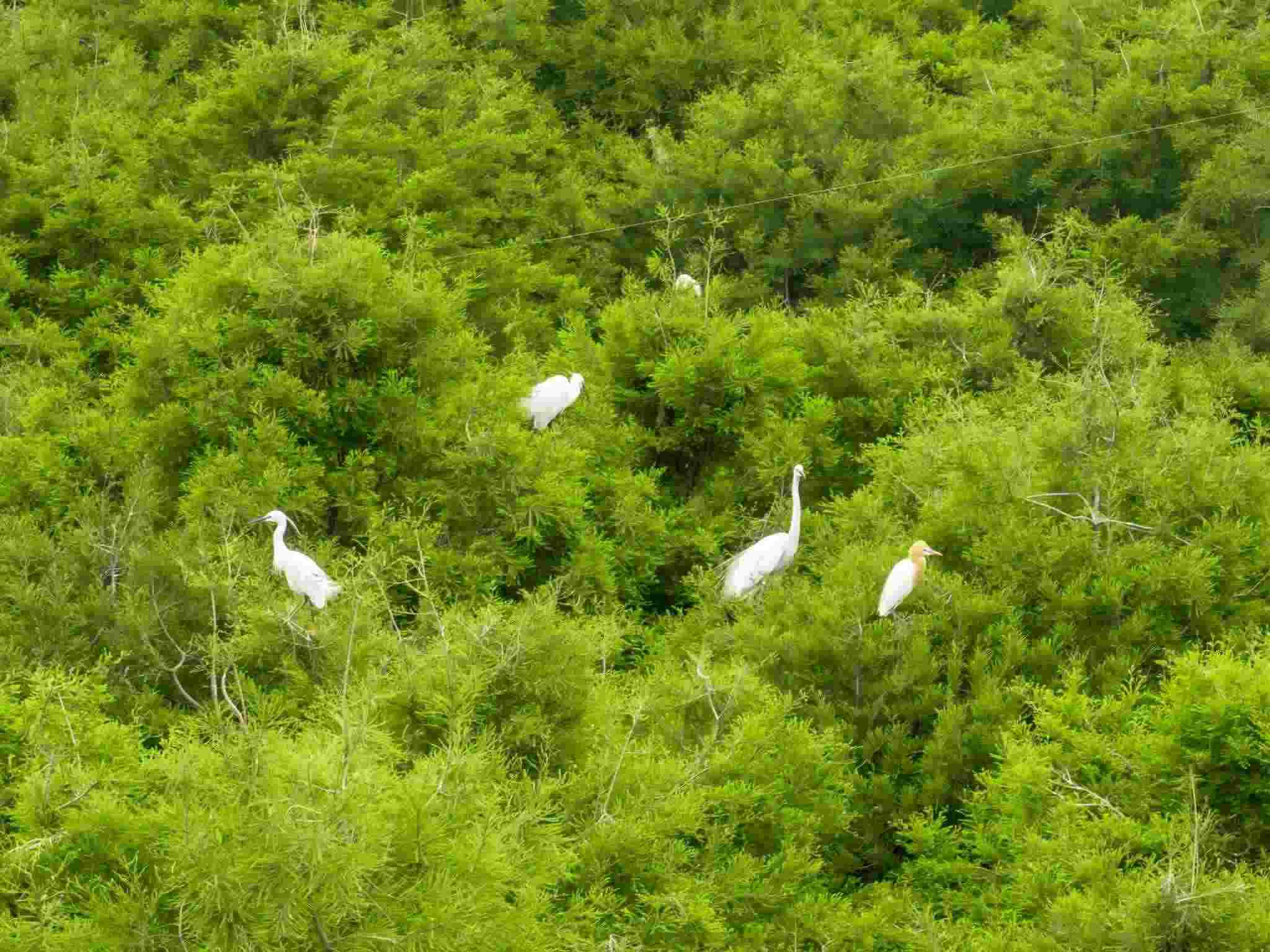 2023年5月11日,江蘇連云港,東??h西雙湖濕地公園,上千只鷺鳥前來棲息繁衍。視覺中國