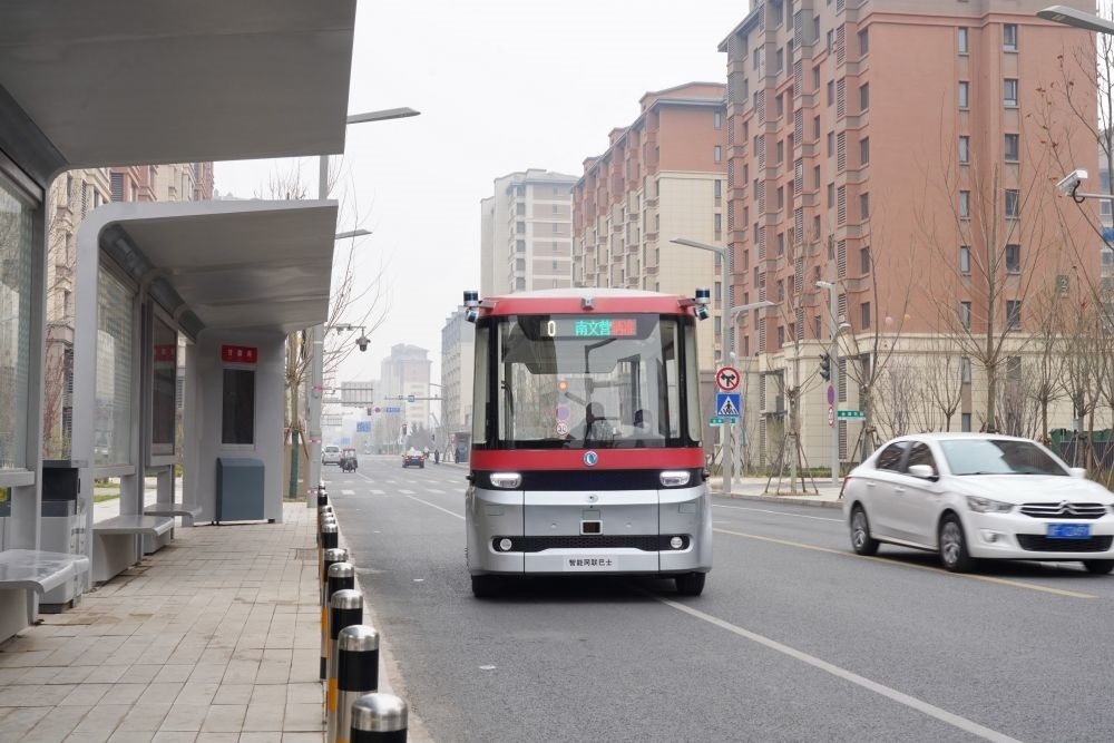 智能網(wǎng)聯(lián)巴士901線測(cè)試車在河北雄安新區(qū)容東片區(qū)道路上行駛(2023年3月20日攝)。新華社記者 牟宇 攝