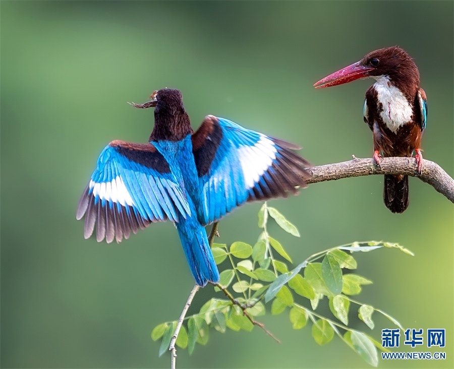 河南省信陽市新縣位于南北氣候過渡帶,地跨長江、淮河兩大流域,植被覆蓋率達(dá)95%,森林覆蓋率達(dá)76.7%。得天獨(dú)厚的自然生態(tài)環(huán)境,吸引了藍(lán)喉蜂虎、藍(lán)翡翠、戴勝等眾多鳥類在這里“安營扎寨”,繪出一幅生動和諧的自然畫卷。新華網(wǎng)發(fā)(闞敦傳 攝)