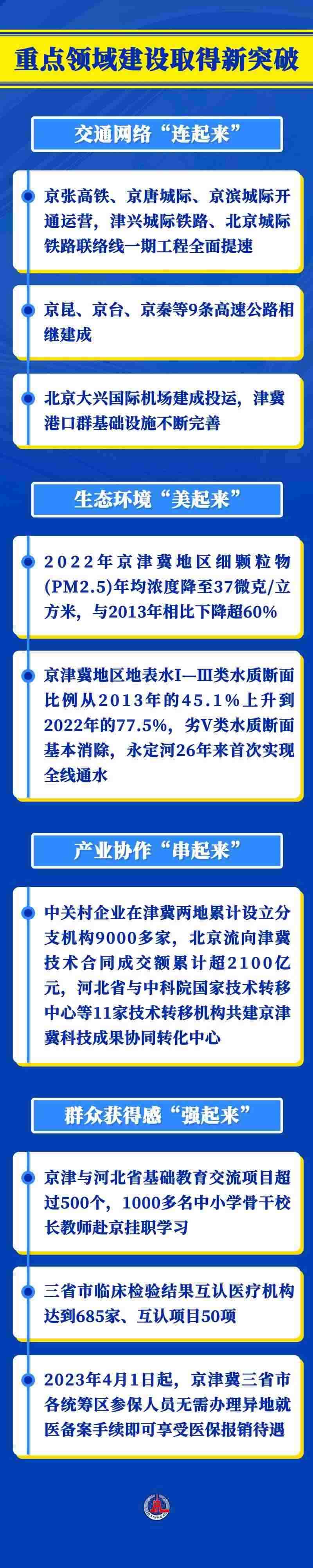 京津冀協(xié)同發(fā)展是一個系統(tǒng)工程。9年多來,三地攜手發(fā)力,重點區(qū)域協(xié)同發(fā)展步穩(wěn)蹄疾,交通、環(huán)境、產(chǎn)業(yè)、公共服務等重點領域建設不斷取得新突破。