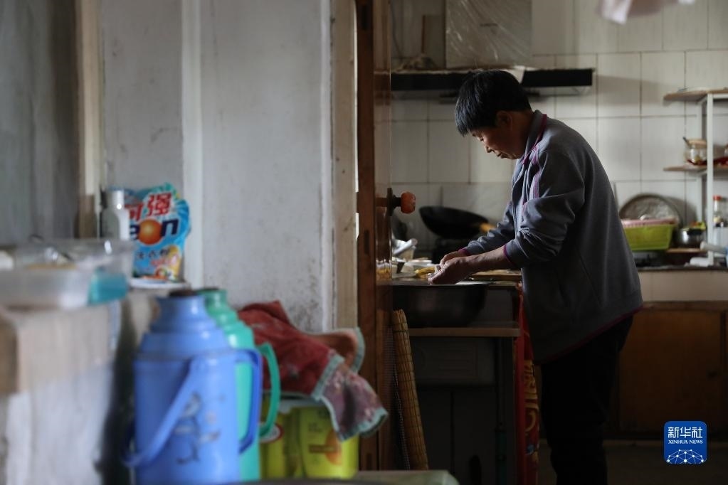 張連琴為女兒準備晚餐(5月7日攝)。