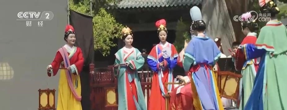 在晉祠的標志性建筑圣母殿前,一場場穿越古今的表演登臺亮相。《晉祠十二時辰》由晉祠講解員自行編排而成,生動還原了圣母殿內人物的一天。從服飾裝扮到生活起居,她們用舞蹈讓雕塑“活”了起來,也使游客從別樣的角度領略了圣母殿折射出的文化魅力。