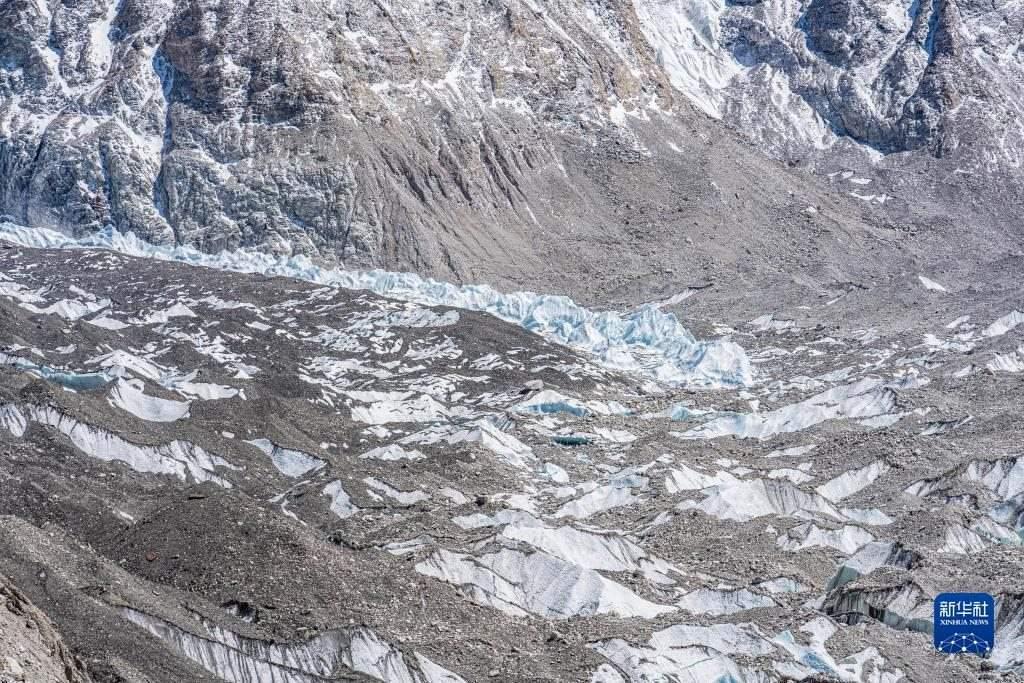 這是珠峰腳下的中絨布冰川(5月15日攝,無人機照片)。