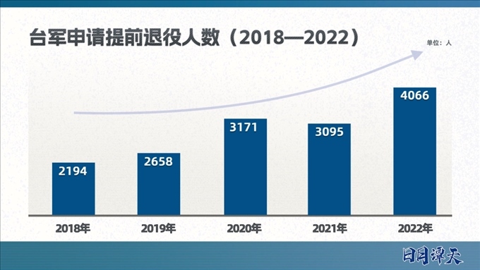 目前,臺(tái)軍實(shí)行以志愿役為主,義務(wù)役為輔的混合兵役制度。臺(tái)軍的主戰(zhàn)部隊(duì)由志愿役人員構(gòu)成,通過(guò)招募而來(lái)、至少服役4年,這次上熱搜的“申請(qǐng)?zhí)崆巴艘鄣?000多人”主要就是志愿役士兵。