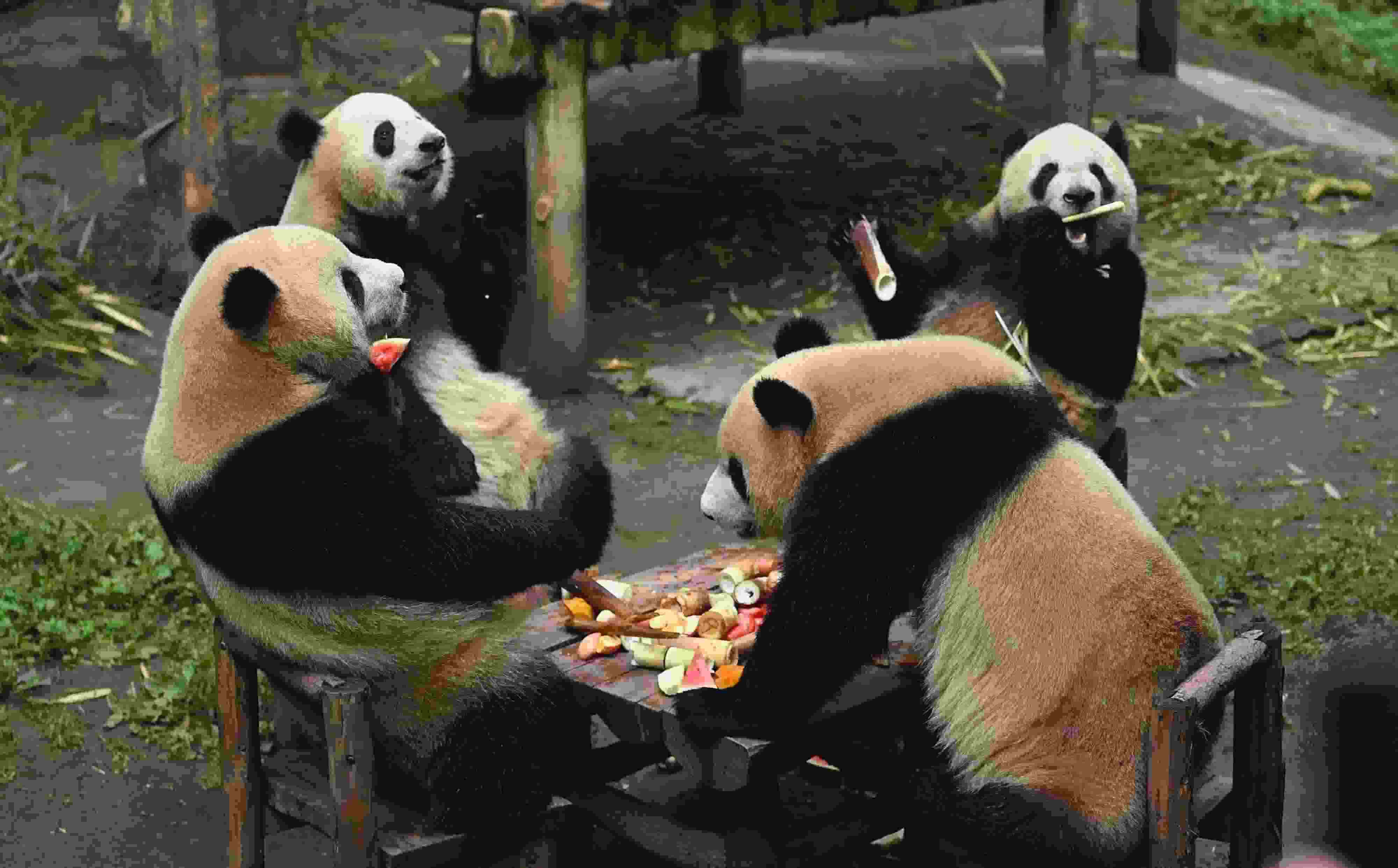 重慶:大熊貓圍桌共享大餐