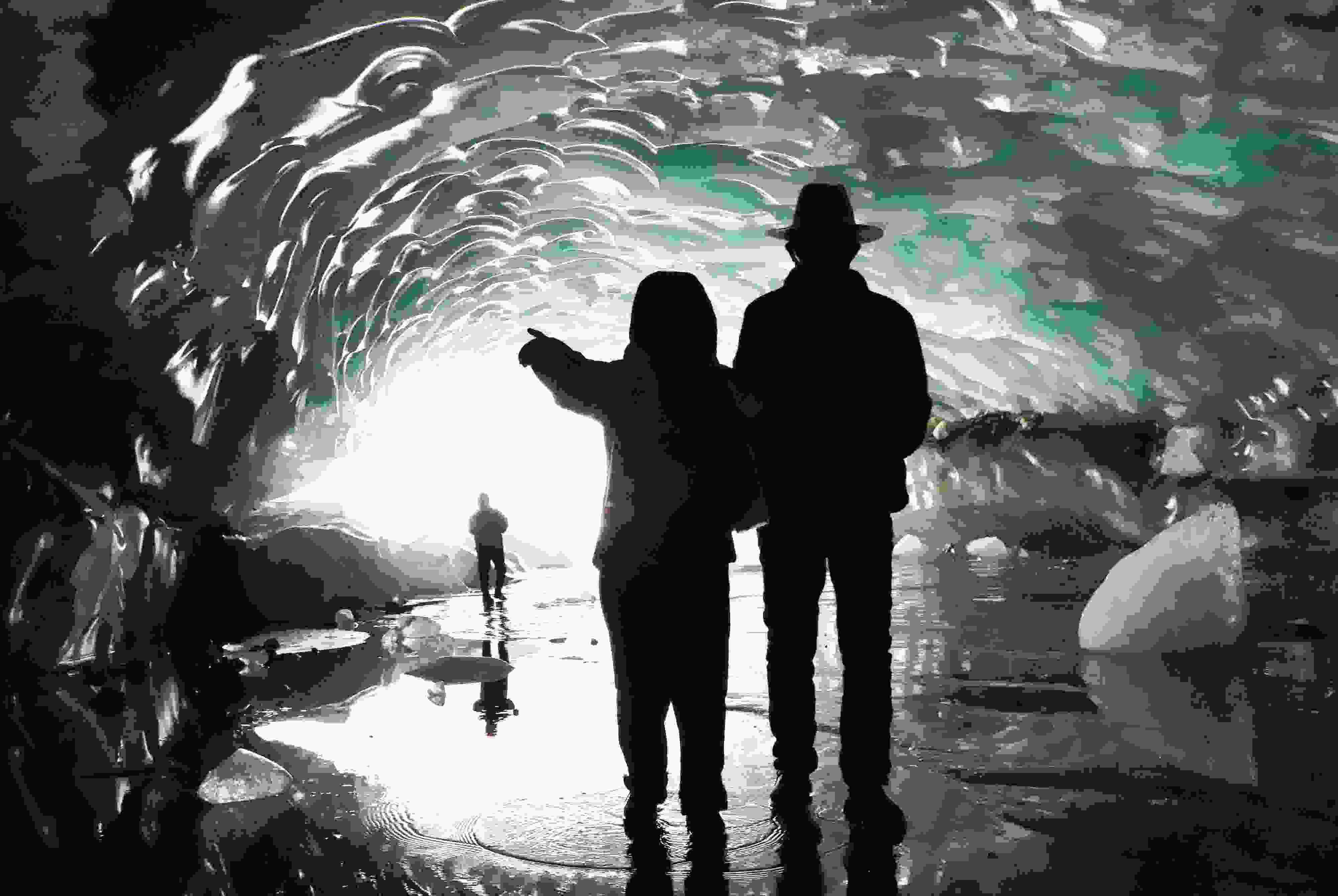 2023年5月21日,西藏昌都,游客在邊壩縣普玉一村游覽冰洞。 視覺(jué)中國(guó)