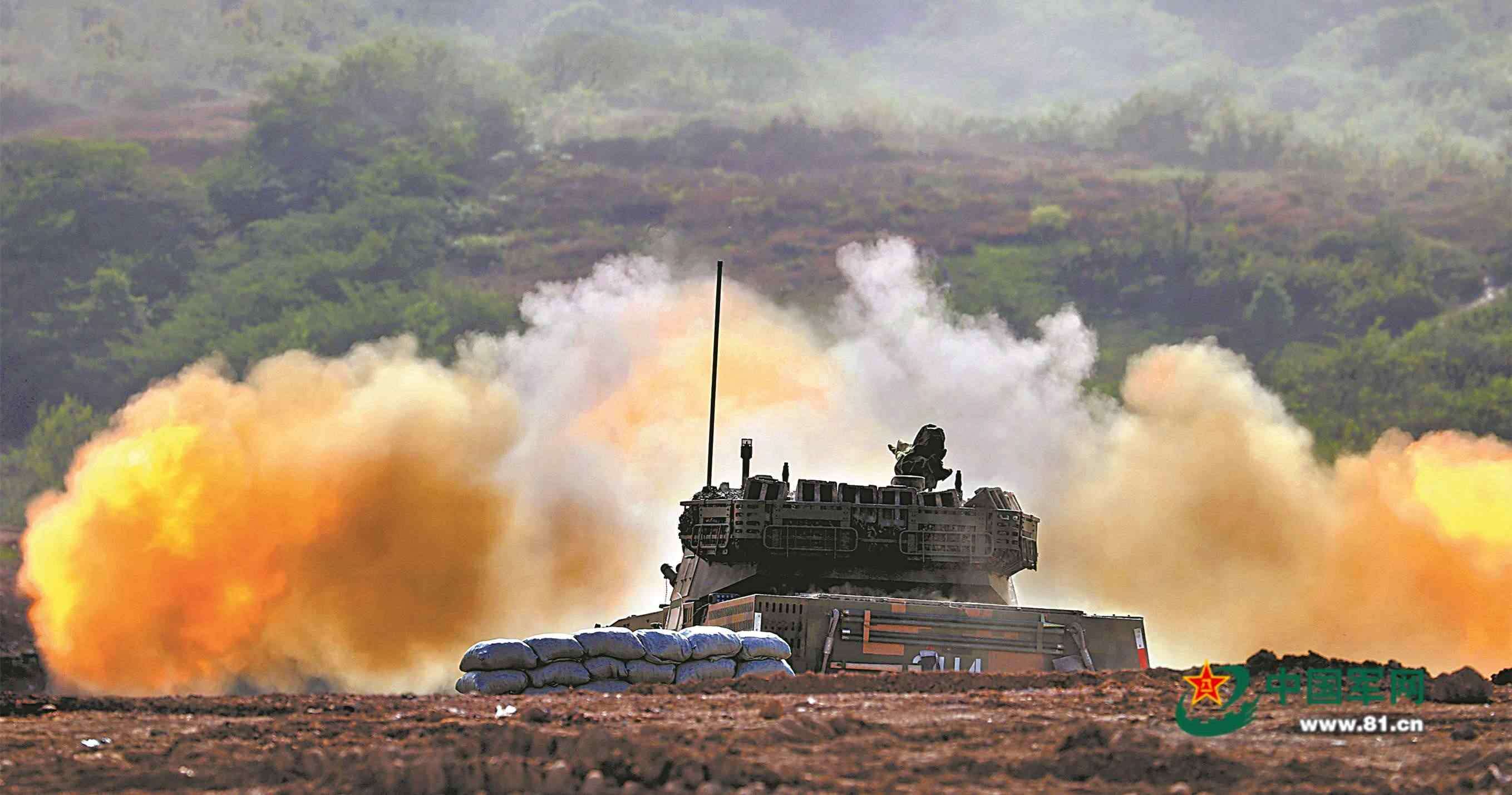 戰(zhàn)機稍縱即逝,偵察隊員立即向指揮所報告情況并呼叫炮火支援。各戰(zhàn)斗小組快速分發(fā)彈藥,戰(zhàn)車迅即駛向預備陣地?!澳繕随i定,射擊!”剎那間,一發(fā)發(fā)炮彈呼嘯著撲向“敵”陣地。
