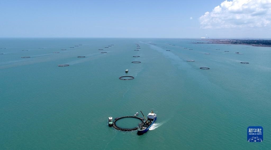 湛江徐聞西連鎮(zhèn)的“海上牧場”(5月27日攝,無人機照片)。