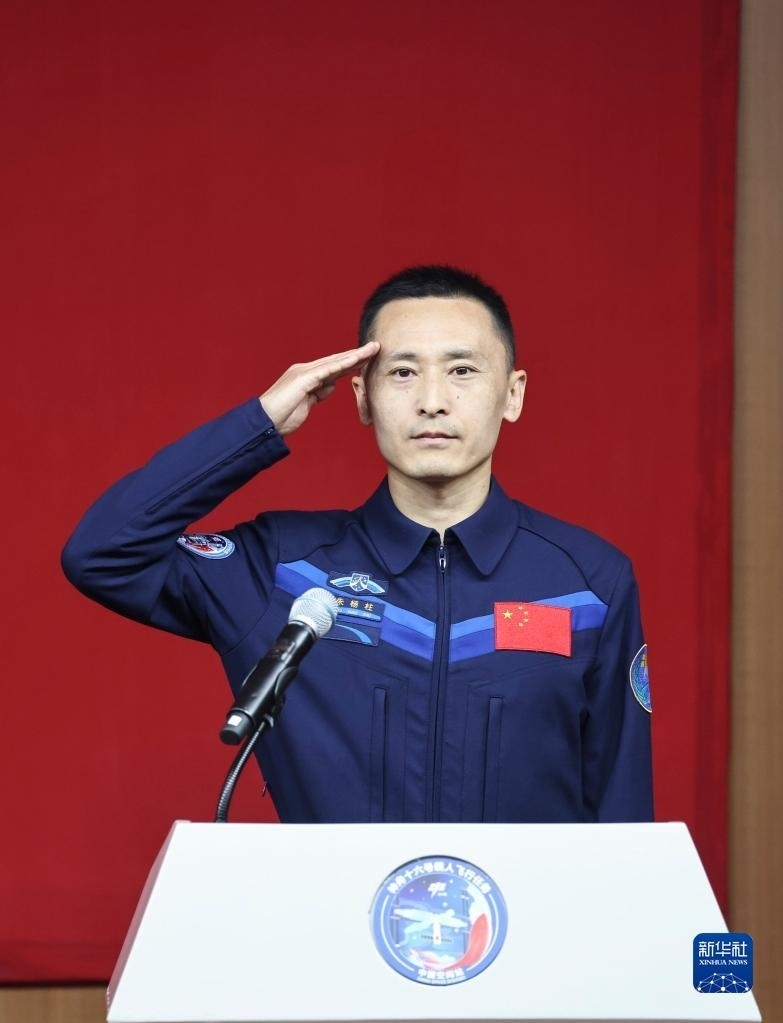 5月29日,神舟十六號航天員乘組與中外媒體記者集體見面會在酒泉衛(wèi)星發(fā)射中心問天閣舉行。這是指令長景海鵬在見面會上。