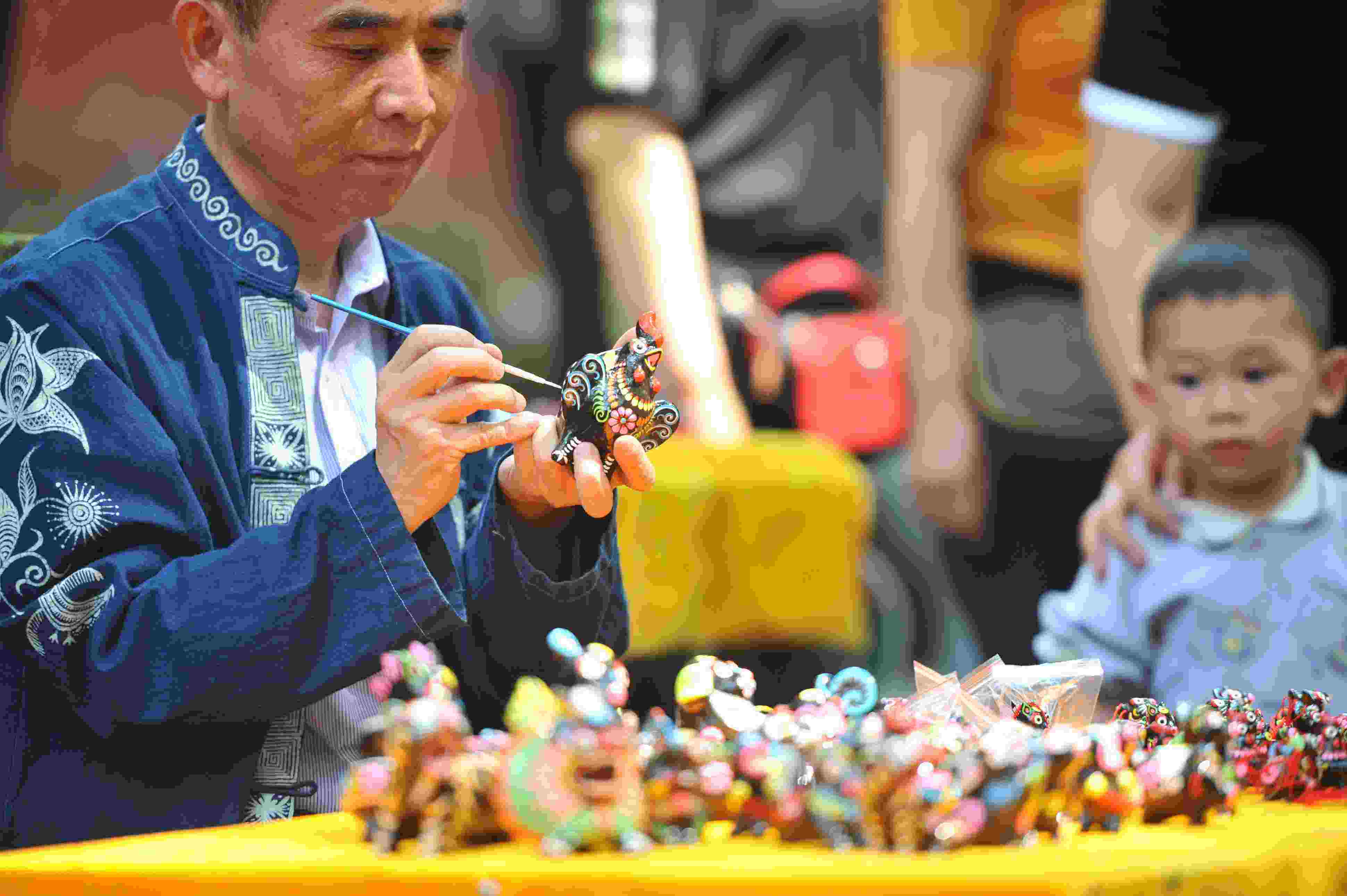 2023年5月26日,民間藝人在貴州省黃平縣飛云崖景區(qū)展示傳統(tǒng)泥哨技藝。 (寧堅(jiān) 楊忠)