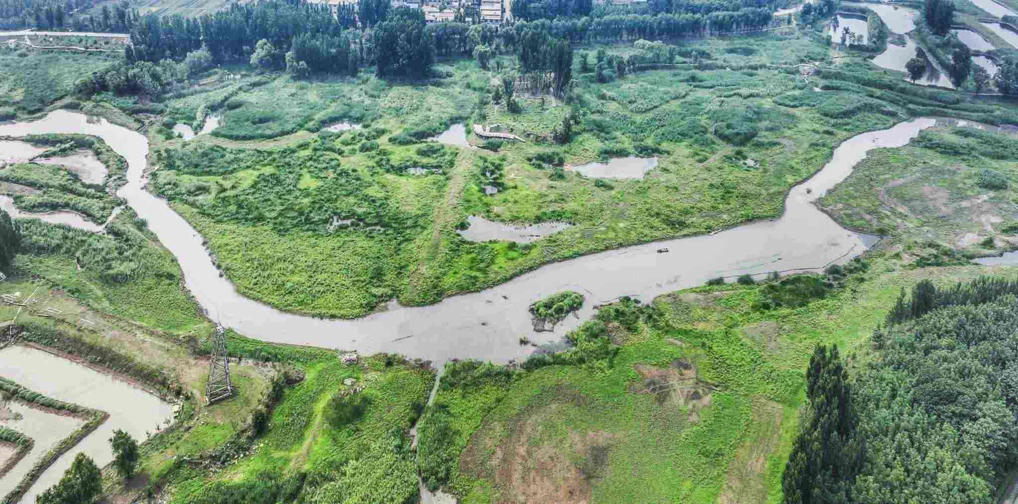 2023年5月31日,山東棗莊,薛城區(qū)蟠龍河國(guó)家濕地公園綠意盎然、流水潺潺、水鳥(niǎo)翩躚而至,繪就一幅美麗的生態(tài)畫(huà)卷。視覺(jué)中國(guó)