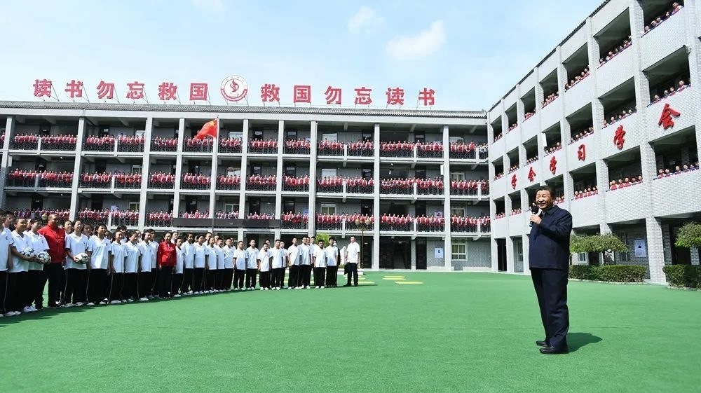 2021年9月14日,在陜西榆林市綏德實(shí)驗(yàn)中學(xué)考察時(shí),習(xí)近平總書記走進(jìn)教室、操場,觀看同學(xué)們書法練習(xí)和體育鍛煉,同大家親切交流。他勉勵同學(xué)們:“真正做全面發(fā)展的人才,一步一步地走下去,最終都能成為對社會有用的人、國之棟梁?!薄暗轮求w美勞全面發(fā)展,字字千金,都是經(jīng)過多年總結(jié)摸索才得出來的?!?/p>