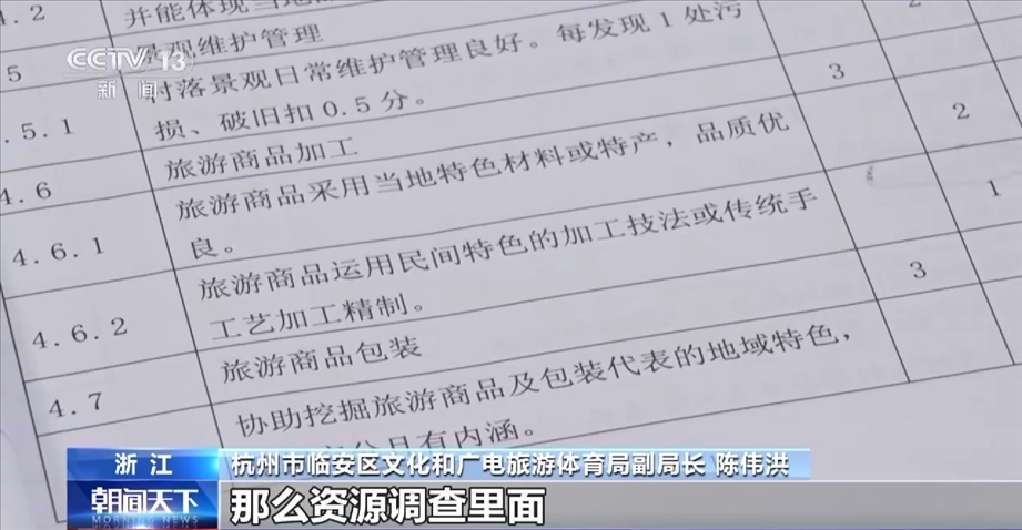 杭州市臨安區(qū)文化和廣電旅游體育局副局長(zhǎng) 陳偉洪:資源調(diào)查是占三分,那么資源調(diào)查里面我們又要細(xì)分一下的,我們有要求,最起碼你這個(gè)村莊里面,比如說(shuō)至少是(調(diào)查)60戶,這個(gè)是肯定的。