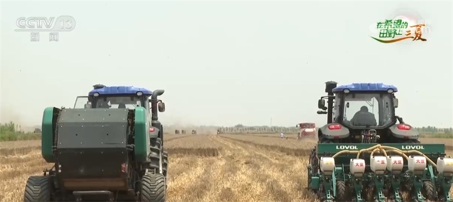 當(dāng)然,確保顆粒歸倉,除了要減損,更要及時(shí)搶收。今年麥?zhǔn)掌陂g,當(dāng)?shù)赜錾狭撕币姷慕涤晏鞖?,而?日開始預(yù)計(jì)還會(huì)有一輪降雨,所以大比武的同時(shí),搶收也在抓緊進(jìn)行,大家要抓緊這幾天的窗口期,進(jìn)行24小時(shí)的搶收作業(yè)。農(nóng)業(yè)專家告訴我,在當(dāng)?shù)?,降雨?duì)于麥?zhǔn)盏挠绊懹袃牲c(diǎn),一個(gè)是土地變得潮濕松軟,大型機(jī)械下地難。針對(duì)這點(diǎn),當(dāng)?shù)匾膊扇×舜胧?,在一些土地還沒有干透的麥田里,我們看到有不少履帶式的收割機(jī),它們雖然體型稍小,但履帶可以避免陷入土地,還有一些無人駕駛的智慧農(nóng)機(jī),可以解決搶收時(shí)的人手問題。這些都是當(dāng)?shù)剞r(nóng)業(yè)部門按照農(nóng)戶需求及時(shí)幫助調(diào)配的。目前,阜南全縣投入聯(lián)合收割機(jī)4300多臺(tái),組建了搶收服務(wù)隊(duì)76個(gè)、農(nóng)機(jī)維修服務(wù)隊(duì)28個(gè),將爭(zhēng)取在5天內(nèi)完成全部麥?zhǔn)铡?/p>