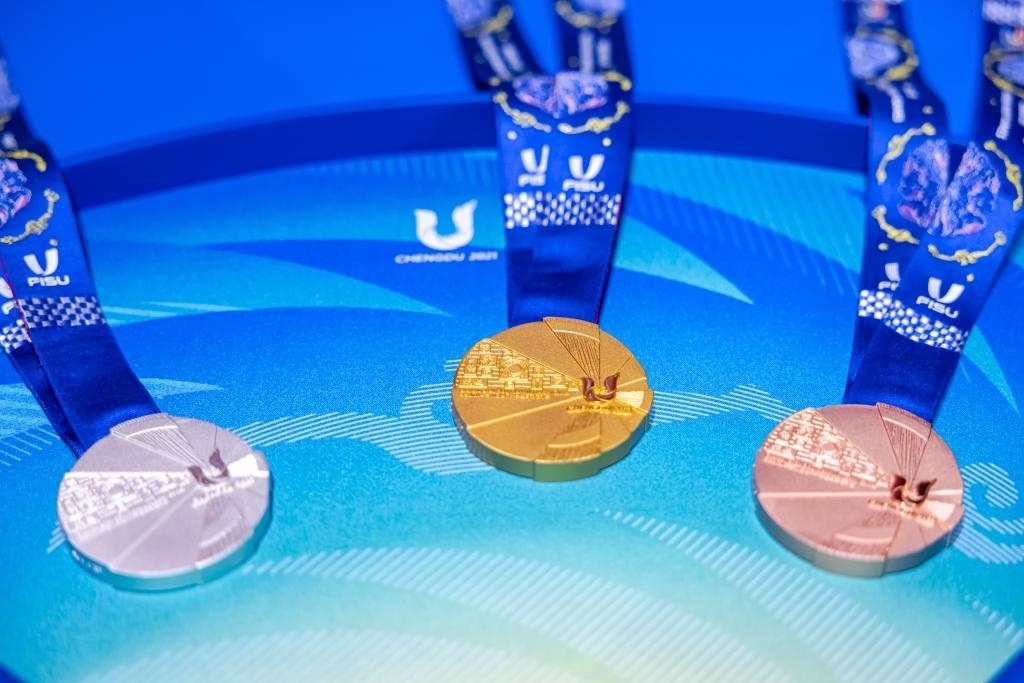 獎牌是每個體育賽事的重要組成部分之一,本屆大運(yùn)會獎牌根據(jù)國際大體聯(lián)要求,融合成都和國際化傳播元素,最終形成了大運(yùn)會獎牌“蓉光”。獎牌整體設(shè)計以成都大運(yùn)會會徽和太陽神鳥為主要靈感,利用幾何扇面代表太陽光芒,傳遞了太陽神鳥守護(hù)夢想的設(shè)計概念。獎牌以“蓉光”為名,諧音為“榮光”,寓意榮耀、光彩,寄托了對大運(yùn)健兒在成都青春展翅、乘夢而行的美好期許。