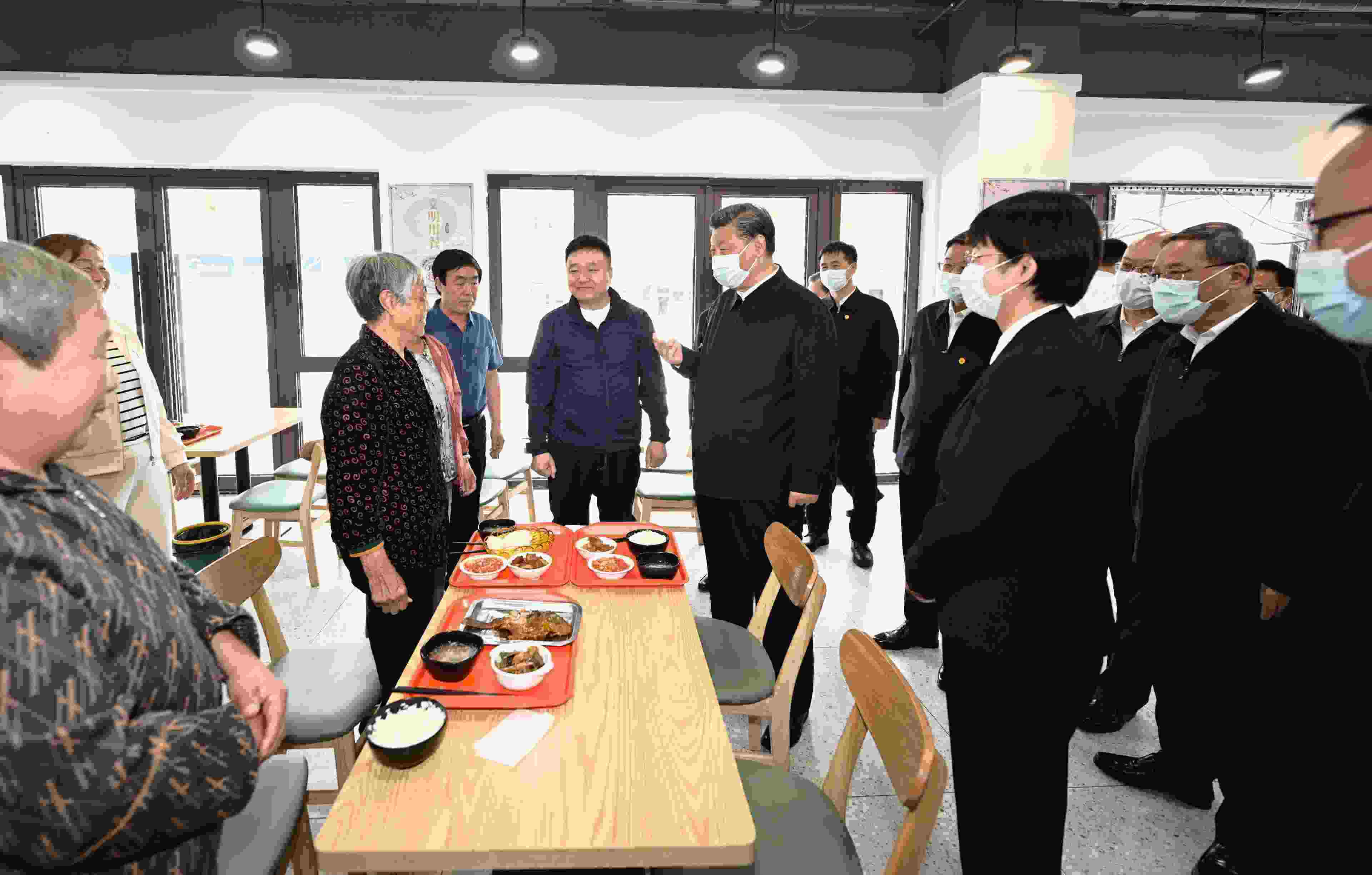 △5月10日,習(xí)近平總書記在河北省雄安新區(qū)考察,并主持召開高標(biāo)準(zhǔn)高質(zhì)量推進(jìn)雄安新區(qū)建設(shè)座談會(huì)。這是10日上午,習(xí)近平在容東片區(qū)南文營社區(qū)食堂同就餐的社區(qū)老人親切交流。