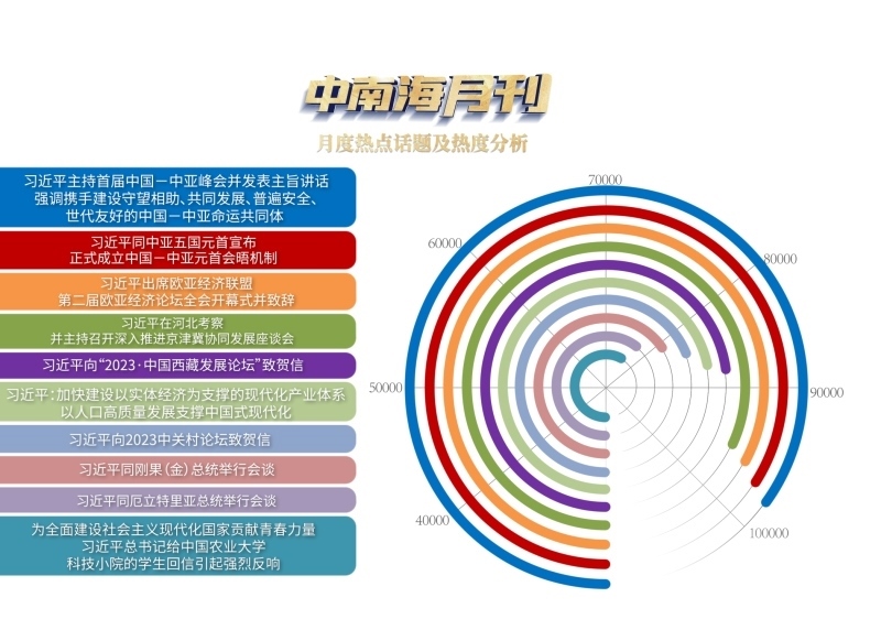 央視網(wǎng)“智聞”系統(tǒng)提取分析5月全網(wǎng)時(shí)政新聞熱點(diǎn)顯示,“習(xí)近平主持首屆中國—中亞峰會(huì)并發(fā)表主旨講話 強(qiáng)調(diào)攜手建設(shè)守望相助、共同發(fā)展、普遍安全、世代友好的中國—中亞命運(yùn)共同體”“習(xí)近平同中亞五國元首宣布正式成立中國—中亞元首會(huì)晤機(jī)制”“習(xí)近平出席歐亞經(jīng)濟(jì)聯(lián)盟第二屆歐亞經(jīng)濟(jì)論壇全會(huì)開幕式并致辭”等元首外交活動(dòng)備受關(guān)注。