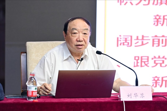 觀展后,參會嘉賓與管理學(xué)院200多名學(xué)生黨員及入黨積極分子在南院報告廳,共同開展“同上一堂主題教育專題黨課,在黨的旗幟下勝利前進(jìn)”黨課活動。此次講座由管理學(xué)院黨委書記張玲娜主持,由北京新四軍暨華中抗日根據(jù)地研究會原副會長劉華蘇主講。
