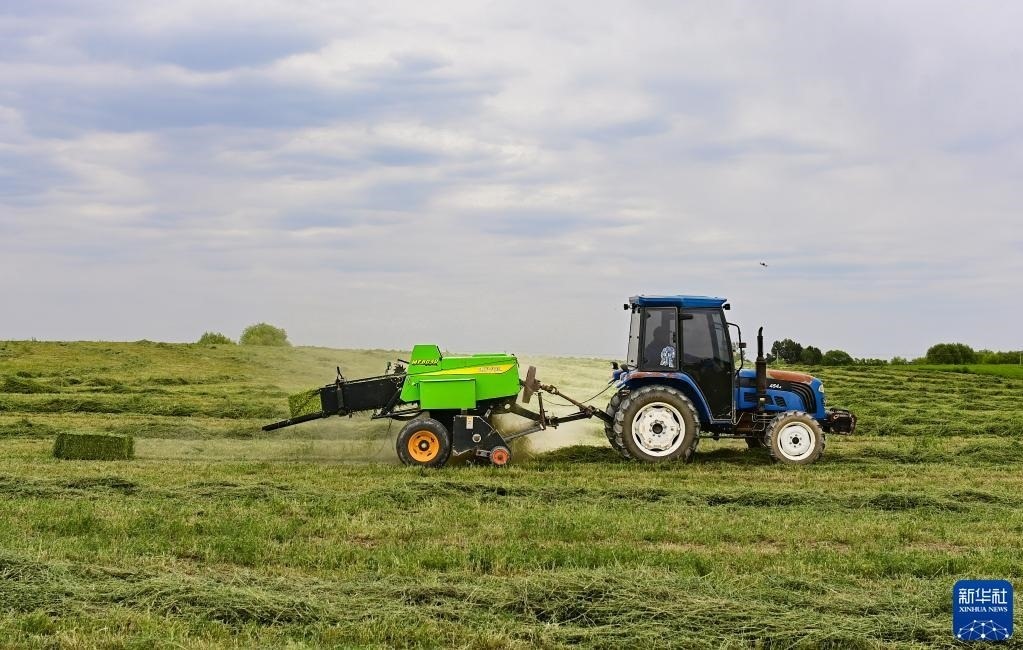 進入6月,內(nèi)蒙古自治區(qū)鄂爾多斯市鄂托克前旗大面積種植的紫花苜蓿進入了成熟收獲期,當(dāng)?shù)胤N植戶搶抓晴好天氣展開收割,確保穩(wěn)產(chǎn)豐收。近年來,該旗借助高效節(jié)水技術(shù),持續(xù)打造優(yōu)質(zhì)牧草基地,種植紫花苜蓿、燕麥草等牧草品種,每年加工干草和青貯飼料超過80萬噸,除供應(yīng)當(dāng)?shù)仞B(yǎng)殖企業(yè)外還銷往內(nèi)蒙古各地,帶動了種植戶增收。